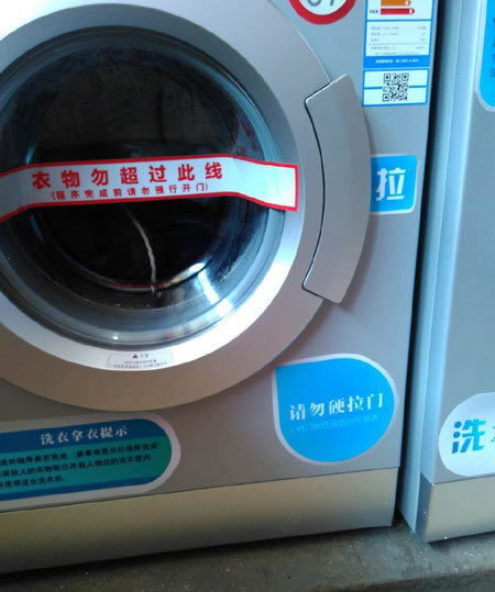 學(xué)校作為自助洗衣的傳統(tǒng)市場(chǎng)領(lǐng)域,自然也在富磊電器的渠道布局之中,部分學(xué)校洗衣房已開(kāi)始使用格蘭仕滾筒原裝自助洗衣機(jī)。每一臺(tái)格蘭仕滾筒原裝自助洗衣機(jī)、干衣機(jī)以及洗衣房?jī)?nèi)部,均張貼了大小提示,方便學(xué)生用戶體驗(yàn)原裝滾筒自助洗衣機(jī)的“快”與“凈”。
