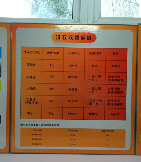 每一種洗滌方式及其對(duì)應(yīng)的程序、收費(fèi)標(biāo)準(zhǔn),清晰在列